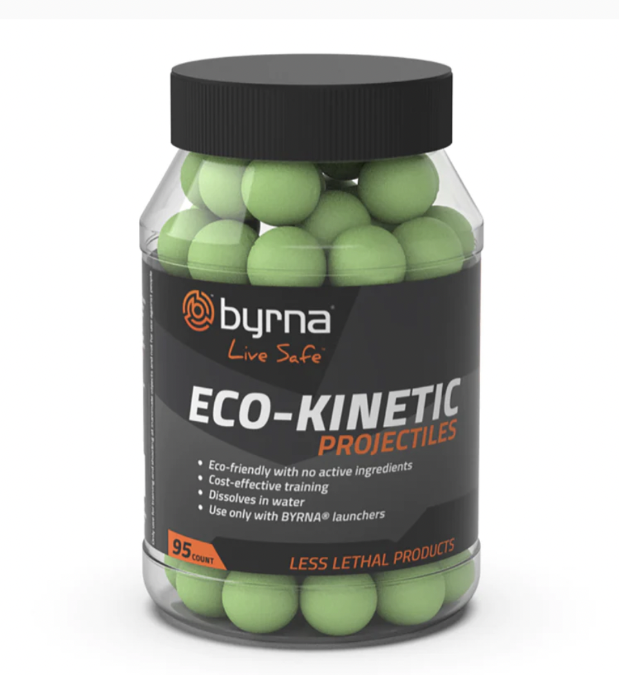 Byrna's Eco-Kinetic rounds are the only truly environmentally friendly .68-caliber rounds available on the market today. Eco-Kinetic rounds are both biodegradable and water soluble for easy cleanup after training.