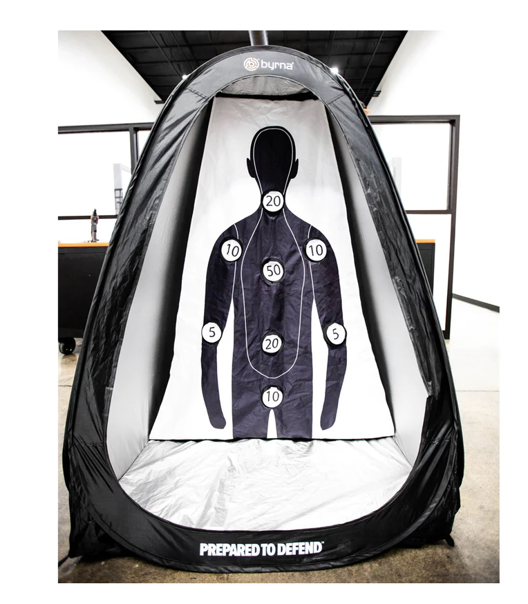 - POP-OPEN DESIGN: Open and close within seconds. The Byrna Life-Size target tent comes with a compact travel pouch for easy transport.